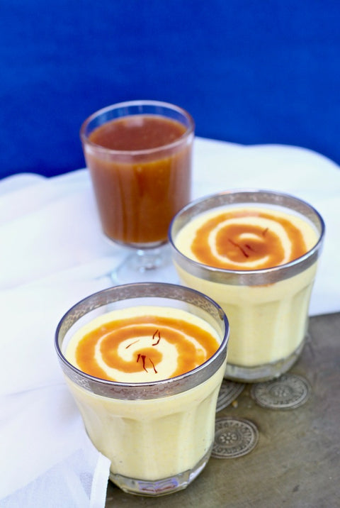 Pannacotta er ikke en dessert fra det indiske kjøkken, men smaken kjennes veldig kjent. Det er en veldig lettvint dessert og som smaker veldig godt. Vanligvis brukes gelatin, men jeg foretrekker plantegelatin. Resultatet blir noe mykere enn gelatin, men du kan sette den i fryseren for en litt fastere konsistens.