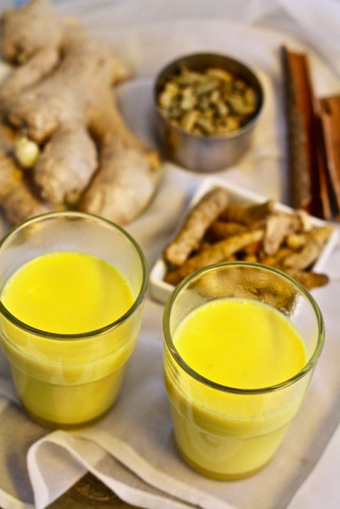 Turmeric betyr gurkemeie og latte er melk med skum. Det er kult at den siden 2015 har blitt hip på caféer ”over there” (Usa, Storbritannia og Australia). Det kalles også ”golden milk”, i India kalles det haldi doodh altså melk med gurkemeie.