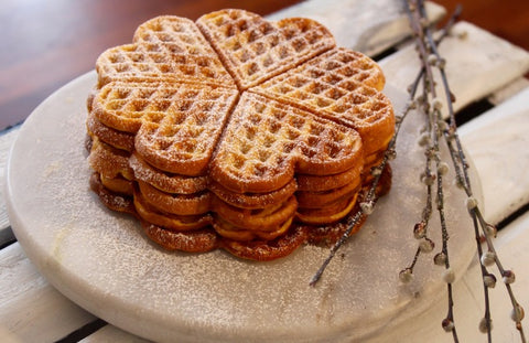 Det nærmer seg den internasjonale vaffeldagen (på fredag) og da har jeg fornyet meg! Det vil si lage en enda bedre smak og mer fargerik variant enn forrige, OG det gikk kjempebra. Mettende er de også, siden det er påske har jeg jukset litt, gjort de litt gule med konditorfarge. En god klype safran kan brukes dersom du ikke forstyrres av den kraftige smaken.